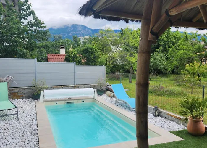 이 La Maison Marilyne - T2 Avec Piscine Privative 아파트는 일광판, 플런지 풀뿐만 아니라 정원의 전망을 갖춘 1개의 베드룸 숙소입니다. 이 숙소는 그랑 세클레 카지노에서 도보로 20분 거리에 있으며 엑스레뱅에서 1.2km 떨어져 있습니다.